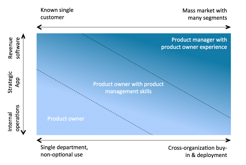 Software projects vary widely in their diversity of users and organizational complexity. Agile product owners may need a range of market-facing and business-side skills to guide complex projects. Commercial product management is one good model to borrow from.