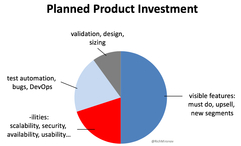 [See Product Spending or Sales-Led Roadmaps.] Then we can ask more nuanced questions like "which 2 of these 8 short-term revenue proposals are likely to deliver the best short-term ROI?" separate from "how will we scale up our platform for 6x volume next year?" separate from "have we done enough validation and discovery to confidently bet on International market expansion?"